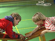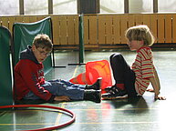 (Das Entscheidende an diesem Spiel war) .... dass alle auf dem Boden lagen und sich robbend fortbewegen mussten.... Mir hat das viel Spaß gemacht, mir mit meinen Freundinnen immer neue Spiele auszudenken, bei denen Katharina mitspielen konnte- und zwar ohne Nachteile durch ihre Behinderung zu haben...